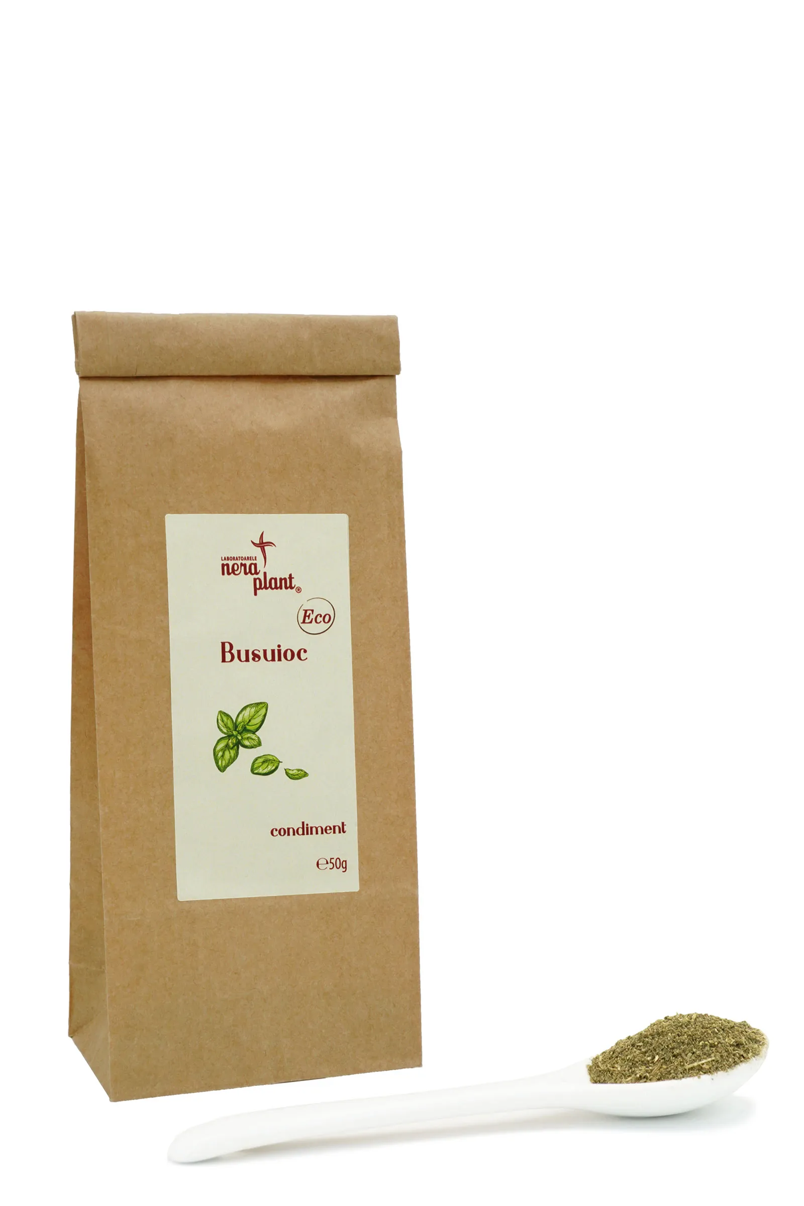 Foarte parfumat, Busuiocul dă preparatelor o savoare puţin dulce şi un parfum uşor de citric. El conţine o cantitate însemnată de vitamina C, vitamina A, substanţe tonice şi antioxidante și minerale esenţiale.